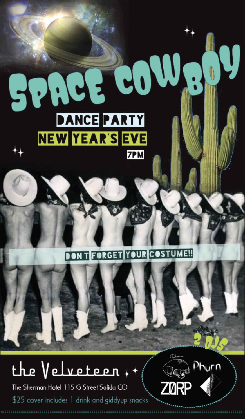 This selection of posters was created for recurring events at a small local favorite nightclub called The Velveteen in Salida, Colorado. The series explores collage, typography, and vintage imagery as a flexible visual system, adapting themes while maintaining a consistent identity across weeks and seasons.